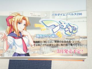 ![]() あと、オリジナル要素?として、なごみルートなのにナゼか祈先生とのエッチシーンがあります。 これはもしや…パラダイムノベルは「大江山祈編」を発売しないつもりなのかっ!? やっぱり祈ちゃんはサブキャラ扱いなのかっ! むっきぃーーーー!ヽ(`Д´)ノ PS2版ではサブキャラ降格、小説ではなごみ編にちょこっとだけ出演……祈先生、がんばれ(つД;) ![]() そして、今回もオマケとして「つよきすしおり」が付いてました。「椰子なごみ編」ということでモチロンなごみん♪ 表面(左)がソフマップテレカ画像の下乳なごみんで、裏面(右)がなごみん立ち絵5重奏です。 ![]() 前回の「鉄乙女編」と併せてしおり2枚。 こうなったら全部コンプリートしてやるゼッ!!